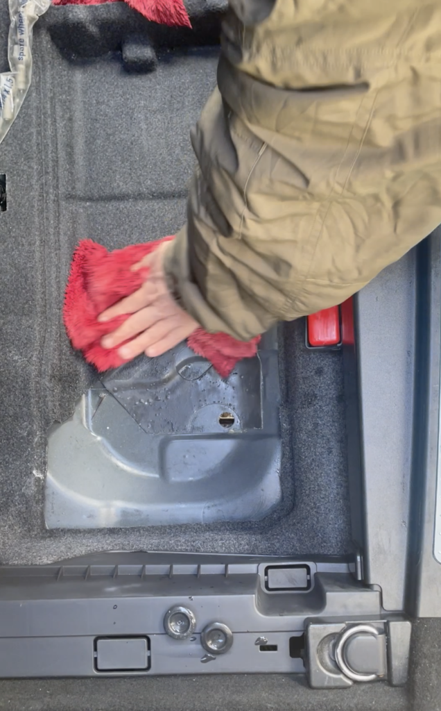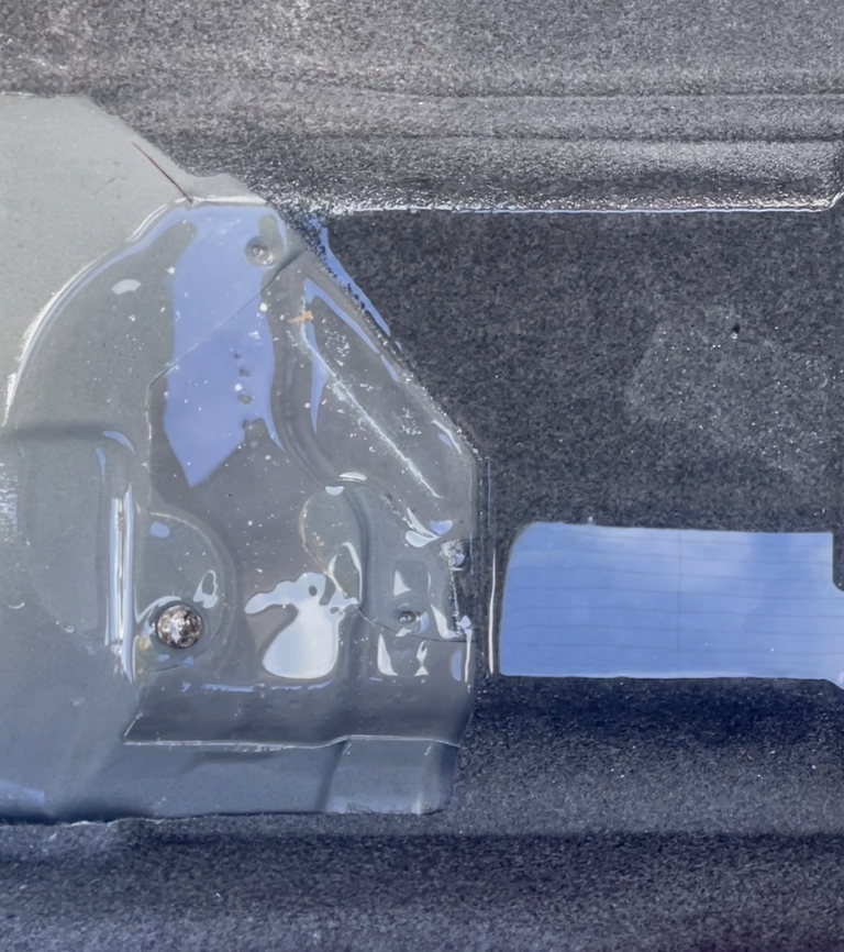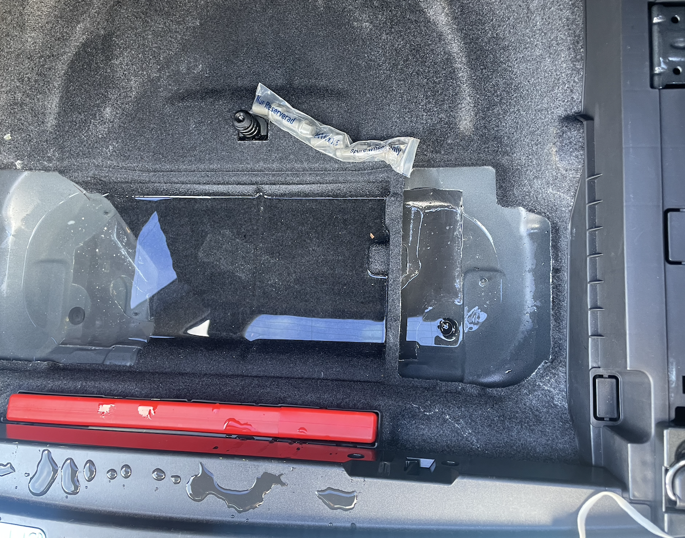 スペアタイヤが収納されている床下部分を開けると、内部に水が溜まっている状態が確認できました。